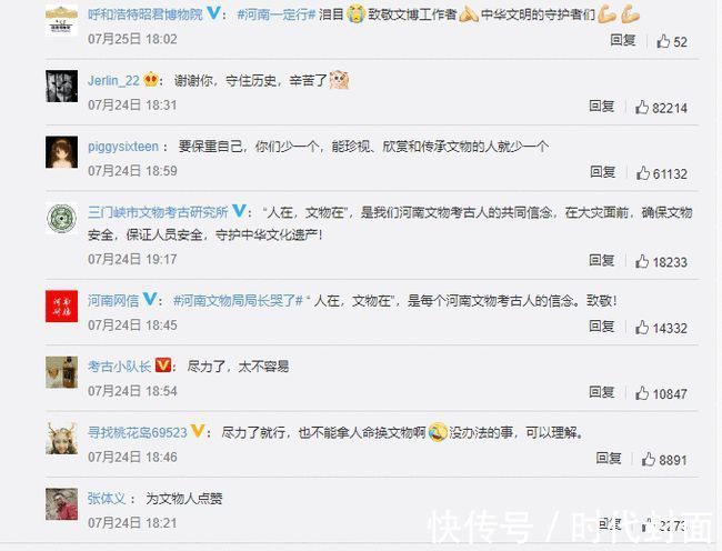 这条动态,道出了暴雨之下文物考古人一往无前的使命与担当,触动了无数文博人。许多网友直呼心疼,纷纷为文物工作者点赞。
